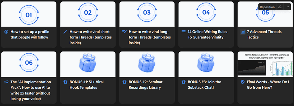 When you become a paid Substack subscriber ($19/mo) you unlock the entire Viral Threads Course and my private Substack chat.